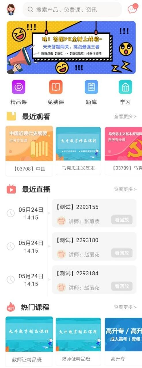 打开大牛网校APP就进入了APP的首页,接下来就带大家一起来康康吧~