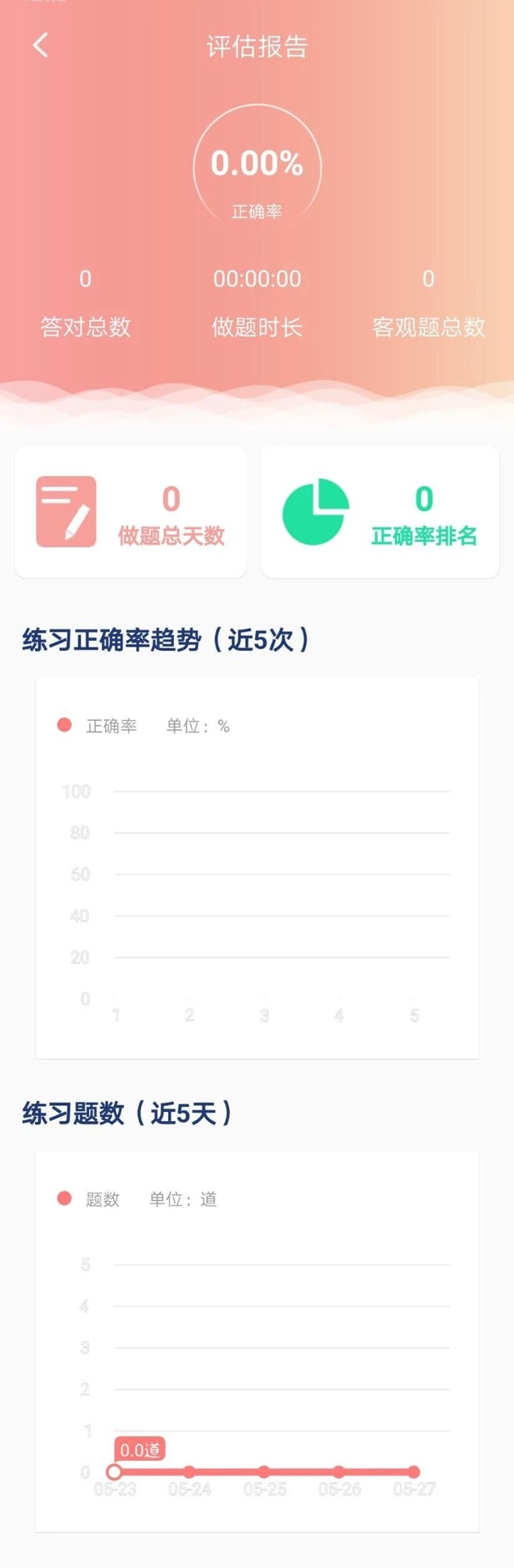 在大牛网校APP上做题,都会定期形成评估报告,在评估报告中,有你做题的总数、做题时长、客观题总数等,会根据你做题的一个情况,得出总的正确率,从而监督日常的一个学习效率。