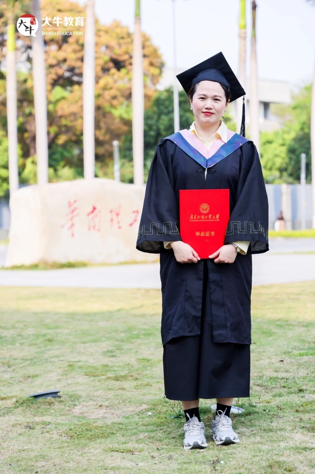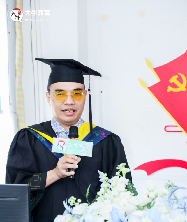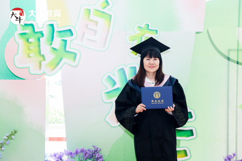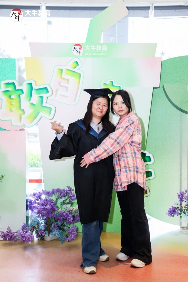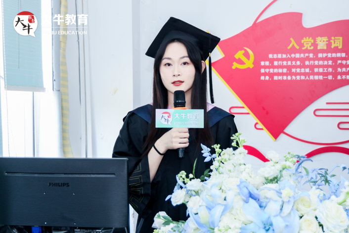 优秀毕业生黄碧真代表全体学员,向广外与大牛教育致谢。在读三年期间通过了大学英语四、六级,她分享了边工作、边家庭、边学习的不易,讲述备考与坚持的历程。在学校与机构助力下,大家收获知识、学历与自律坚持的品质。毕业不是终点,她鼓励大家带着毅力持续精进,靠努力证明价值,奔赴更闪亮的未来。
