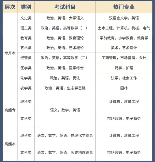 -学历基础要求:报考高起专(高中起点升专科)、高起本(高中起点升本科)的考生,需具备高中、中专或同等学力;报考专升本(专科起点升本科)的考生,必须持有经教育部审定的国民教育系列专科及以上毕业证书(如大专毕业证、本科结业证等)。