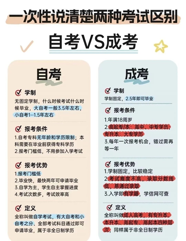 26年学历提升!成考和自考有什么区别?哪一种更容易上岸呢?