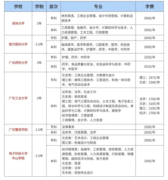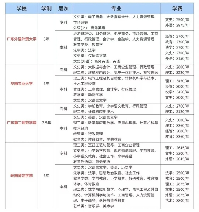 2026年广东省成人高考报读院校+专业推荐(附优缺点以及收费标准)