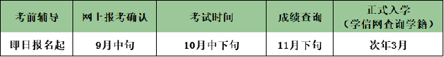 预报名阶段:即日起(了解专业、学费等信息,并在线预登记)