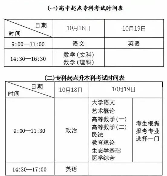 1.考试时间:10月中旬参加全国统一成人高考,具体时间以广东省招生办公室公布时间为准。
