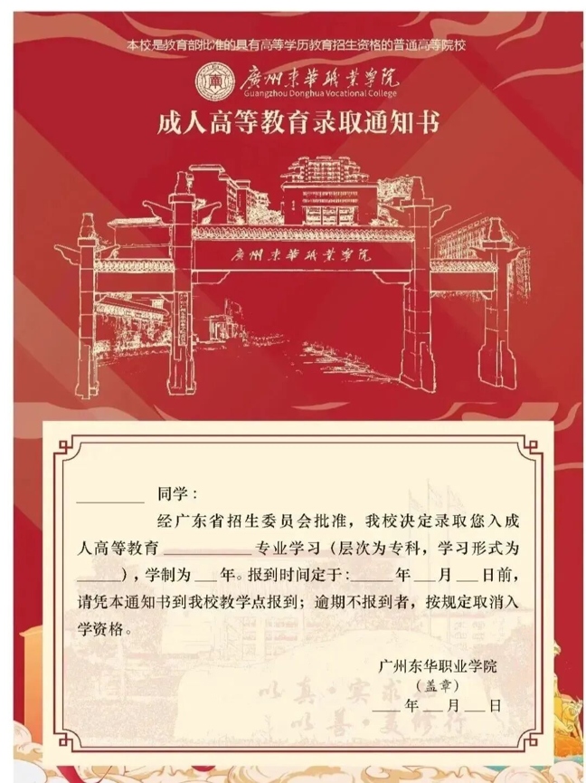 参加全国成人高考统一入学考试并达到我校录取分数线和招生条件者,经广东省考试院统一录取,颁发录取通知书。