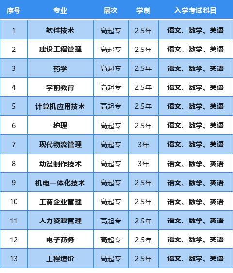 高起专:语文、数学、英语