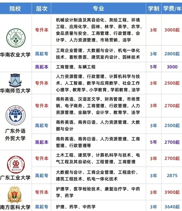 2026年广东省成人高考报读院校+专业推荐(附优缺点以及收费标准)