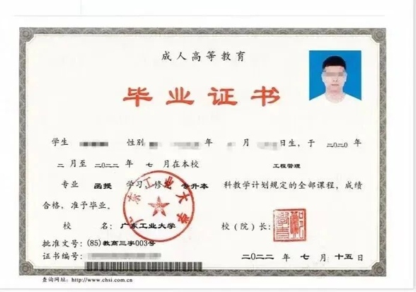 修完教学计划规定的课程,考核成绩合格,符合毕业条件者,由广东工业大学颁发经教育部电子注册的成人高等教育本科或专科毕业证书。