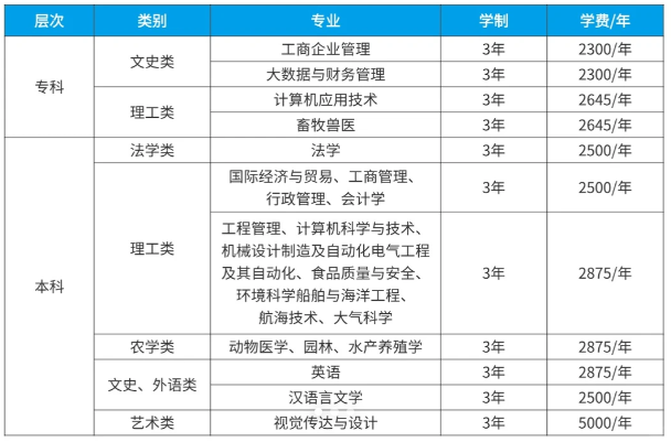 招生专业、学制、学费