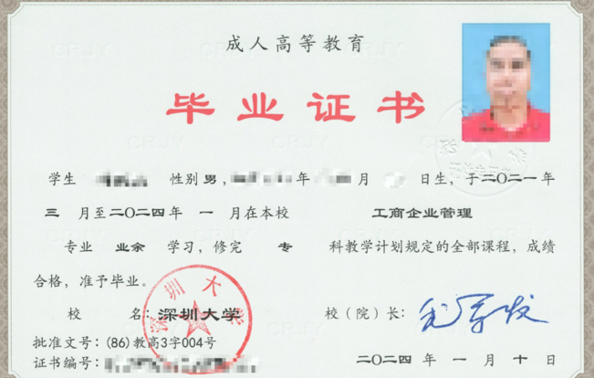 凡被深圳大学正式录取,按规定修完专业教学计划的全部课程且考核合格者,由深圳大学颁发“成人高等教育毕业证书”,毕业证书可在国家教育部指定的“中国高等教育学生信息网(www.chsi.com.cn)”查询,国家承认学历。