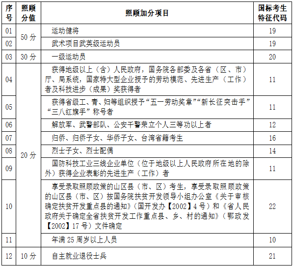 成考加分照顾政策