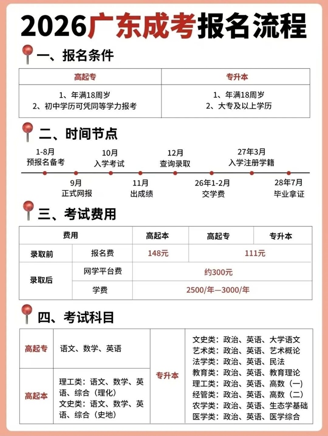 2026年广东成人高考报名攻略!报名时间、报名条件、院校学费专业一图汇总