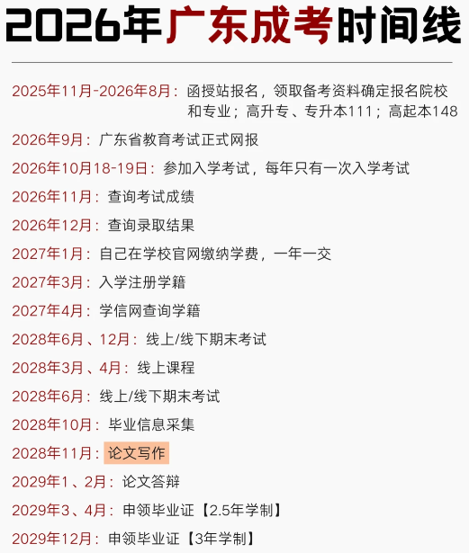 2026年广东成人高考时间线!附报考条件,考试科目,院校专业汇总