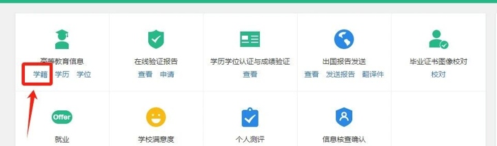 点击高等教育信息中的“学籍”