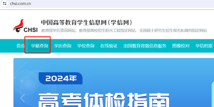 登录《中国高等教育学生信息网(学信网)》(https://www.chsi.com.cn/),点击“学籍查询”