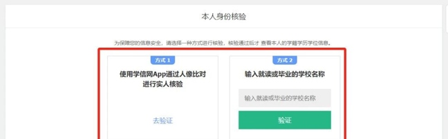 选择身份核验方式,查看注册的学籍信息