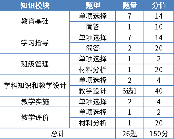 保教知识与能力(幼儿园) 试卷结构及作答时间建议
