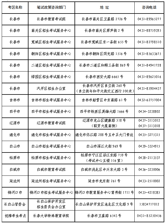 符合吉林省报名条件的视障考生请提前与视障考点长春大学特教学院取得联系,符合报名条件的方可选择长春大学视障考点进行报考,联系人:刘老师,联系方式:0431-85250456。