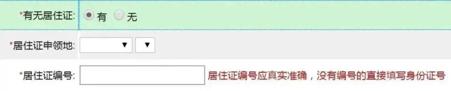 该类考生在笔试报名中,居住证填“有”,并填写居住证申领地及证件编号。