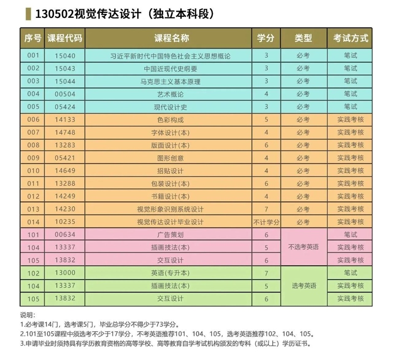 其核心优势与实践考核模式,与视觉传达设计本科高度相似。实践环节由主考院校全程主导,以过程性考核为主,难度低、易通过。考生的核心备考压力,集中在 6门统考笔试科目。
