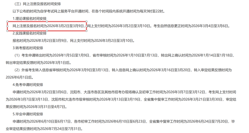 通知:辽宁省2026年上半年高等教育自学考试报考简章