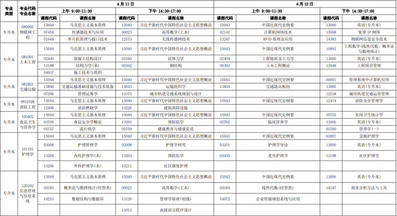 | 考试 | 1月考试:1月10-11日 4月考试:4月11日-12日 |