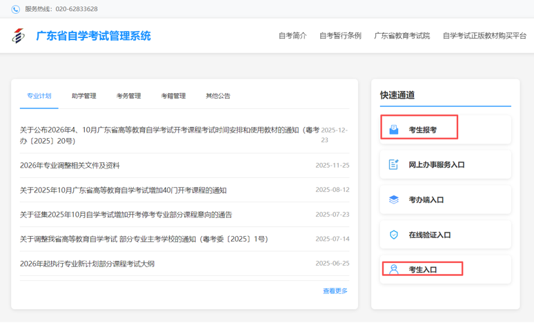 新老考生都是在广东省自学考试管理系统注册、报考科目的;