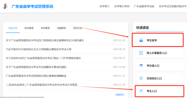 登录广东省自学考试管理系统:https://www.eeagd.edu.cn/selfec/