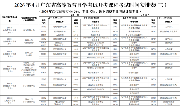 一、2026年4月广东自考时间安排