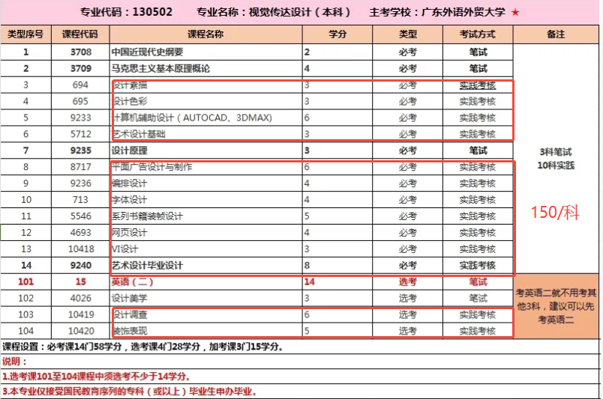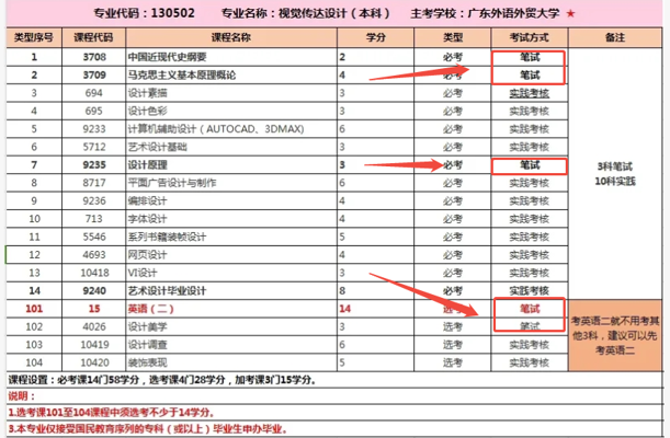 (以视觉传达为例子:需要缴纳52元报考费的科目,就是考试计划中“笔试”的科目)