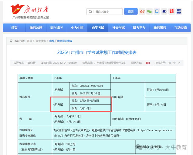 重要节点|2026年上半年广东自考本科报名、考试以及成绩查询时间已公布!