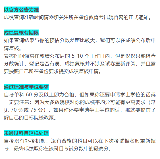 6.关注后续通知:及时了解成绩查询、准考证打印等信息,按报考科目制定备考计划,衔接实践考核或论文答辩节点