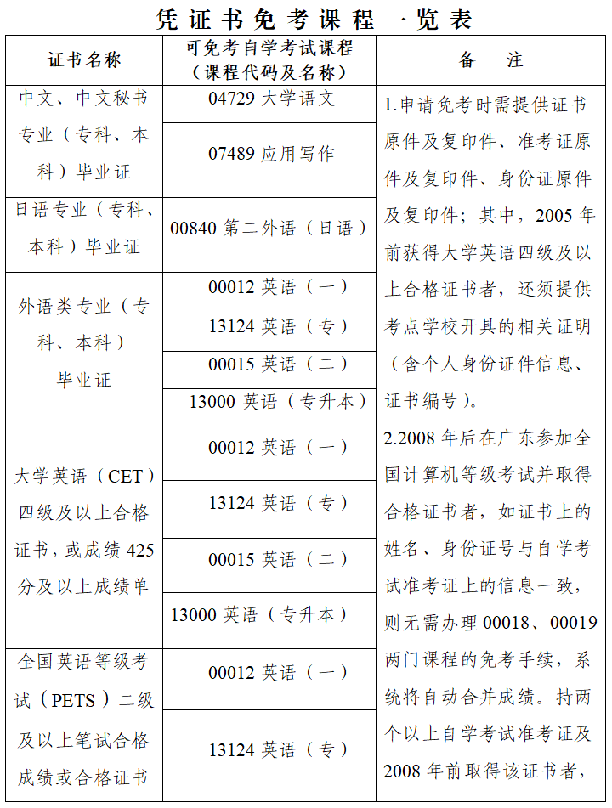 2.肄业生、退学生须到当地市考办现场办理免考申请手续。