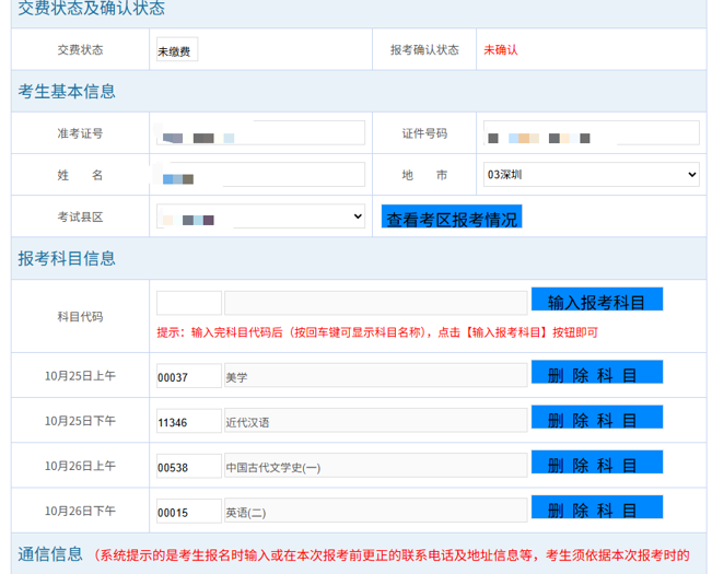 二、课程报考:选择当期考试科目