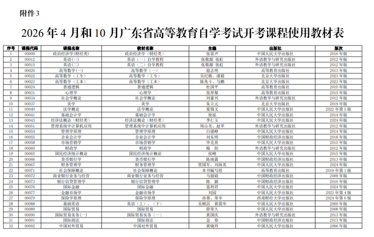 由于篇幅有限,需要完整版2026年4月和10月广东省高等教育自学考试开考课程使用教材表同学,可以进入我们公众号,然后在公众号后台回复【自考教材】获取↓↓↓