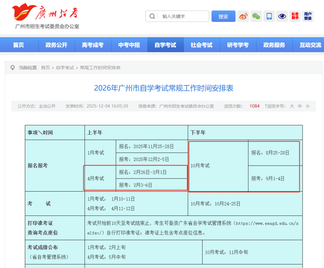 2026年4月广东自考报名时间公布了吗?1月考期成绩怎么查询?