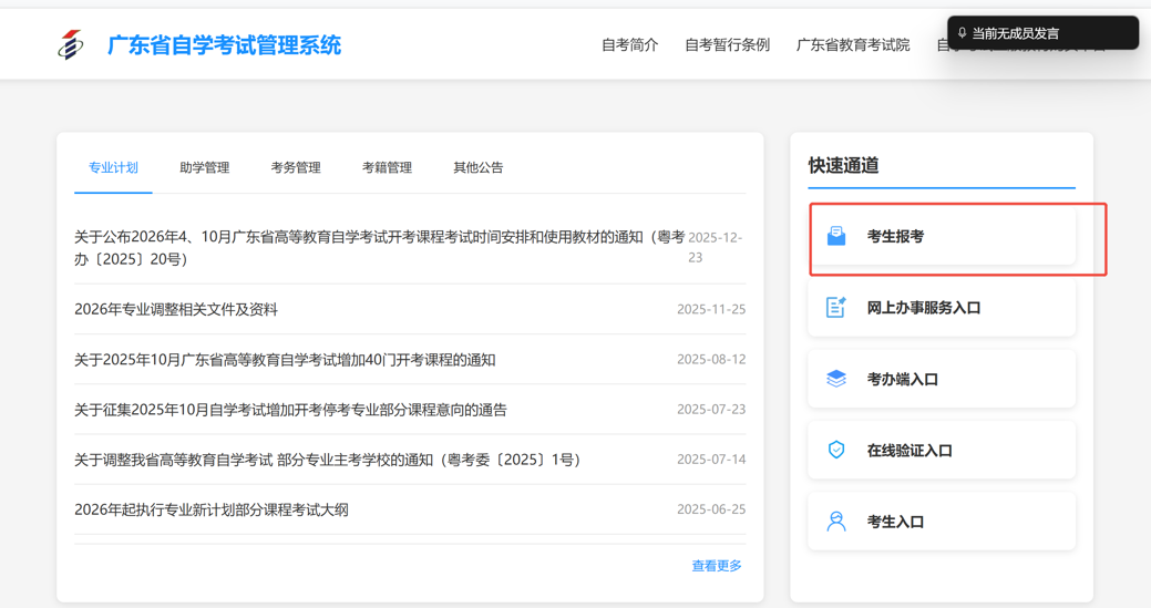 ,新生需先注册账号,绑定个人信息,老生直接用准考证号登录报考科目。