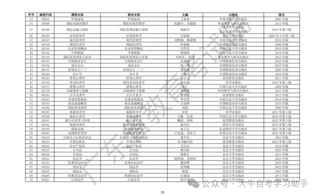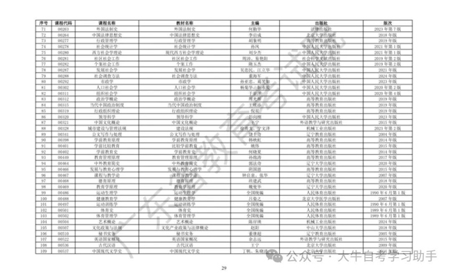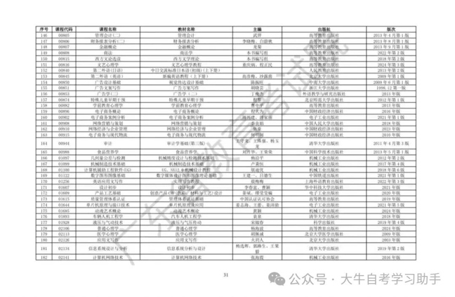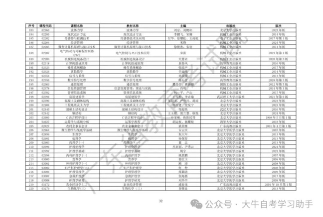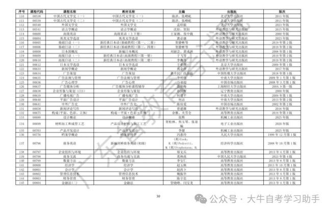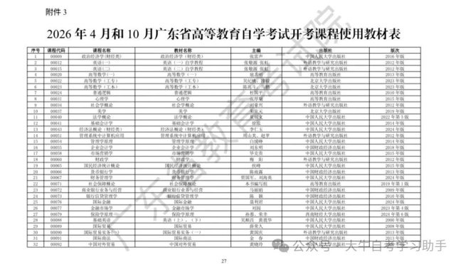 2026年4月广东省高等自学考试开考课程使用教材表