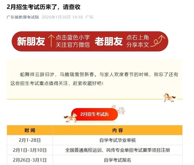【官方通知】2026年广东省更等教育自学考试报名报考时间已公布!