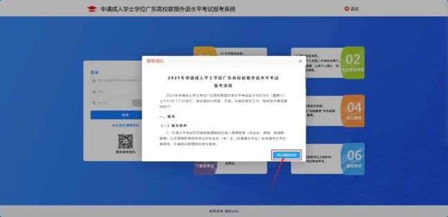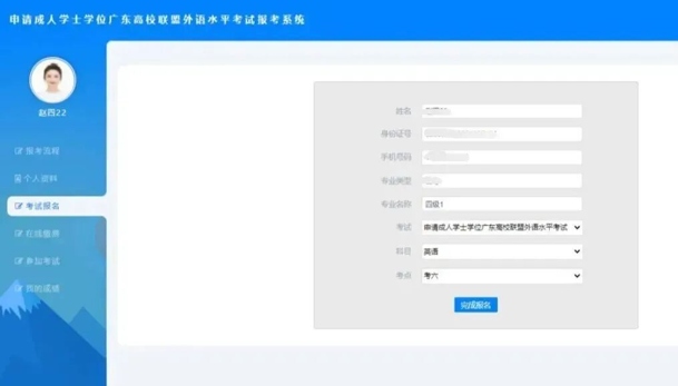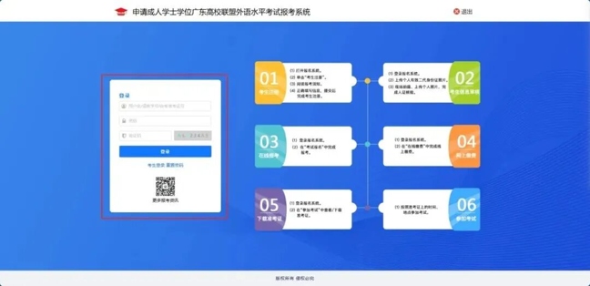 1、登录申请成人学士学位广东高校联盟外语水平考试报考系统(