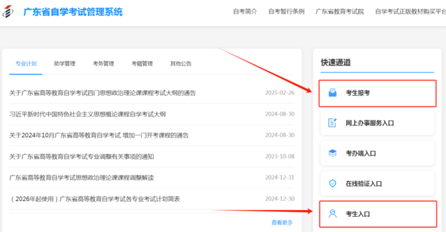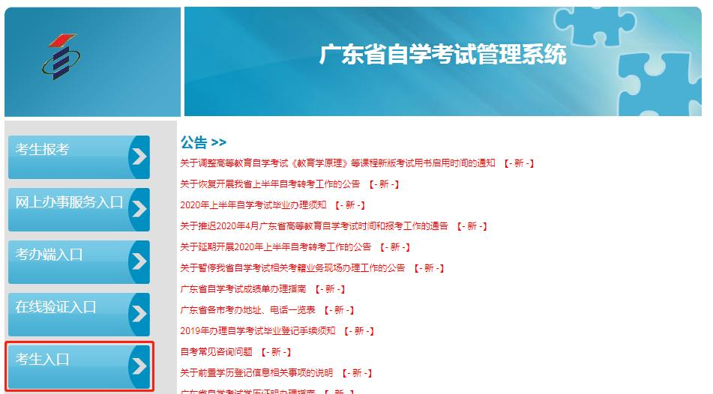 第一步:登录广东省自学考试管理系统(网址:https://www.eeagd.edu.cn/selfec/)点击考生入口