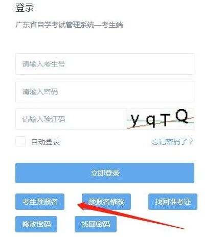 首次参加广东省自学考试的学生(即没有广东省自考准考证的考生)须通过广东省自学考试管理系统(网址:https://www.eeagd.edu.cn/selfec/),从【考生入口】通道办理新生报名手续,获得唯一准考证号(务必牢记本人准考证号及密码),然后才可选择课程报考新生报名分预报名和正式报名两个阶段。