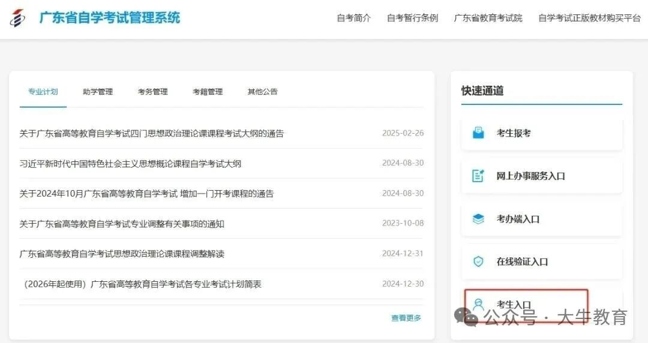 登录广东省自学考试管理系统