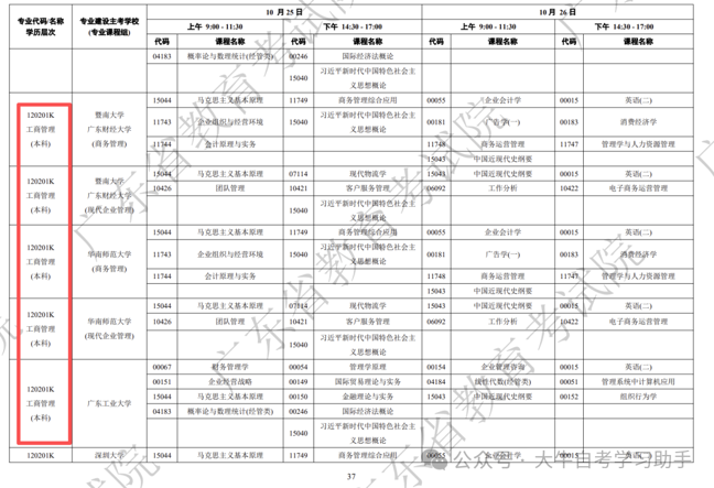 改革前,仅工商管理专业就安排多个考试计划