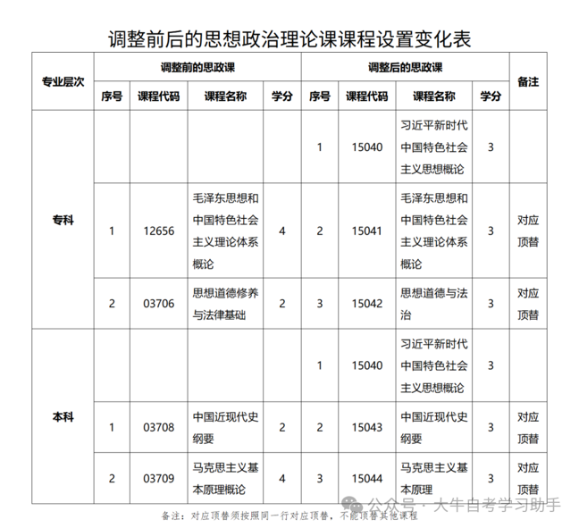 1、思政课顶替(必须一科顶替一科)