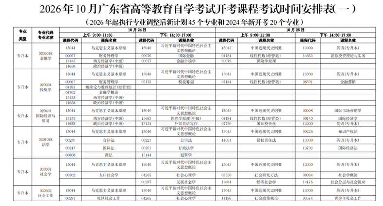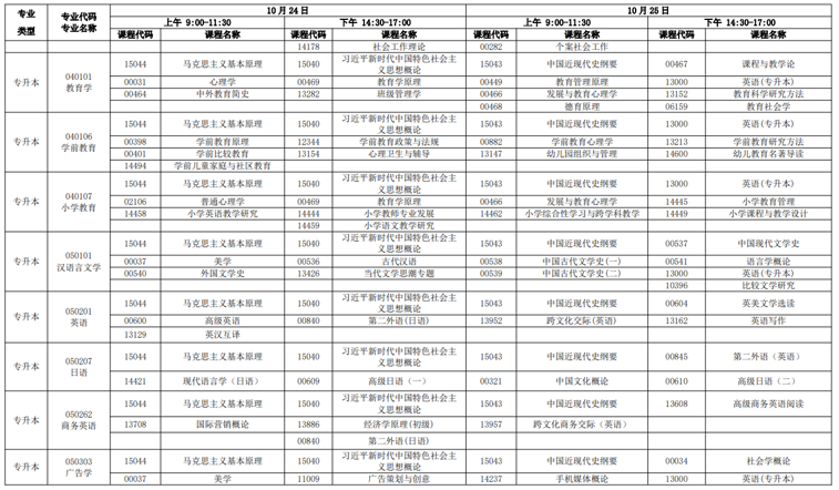 一、广东10月自考时间安排