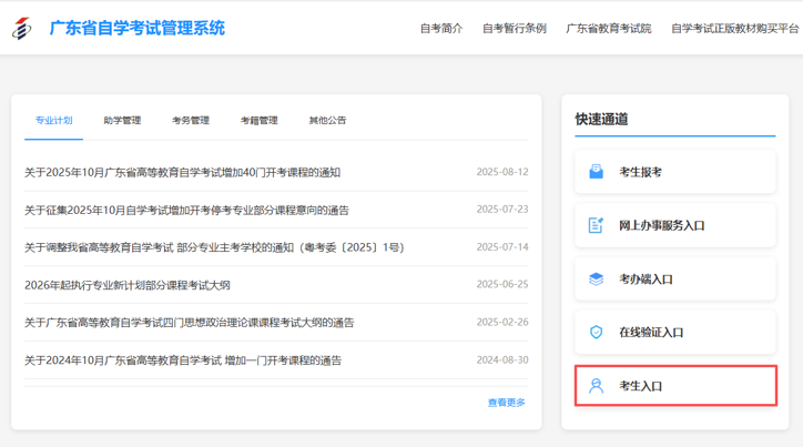 登录广东省自学考试管理系统