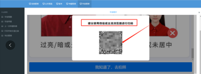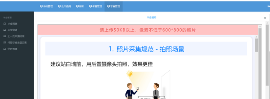 3、回到毕业管理页面--点击“毕业申请”点击“毕业申请及图像采集”