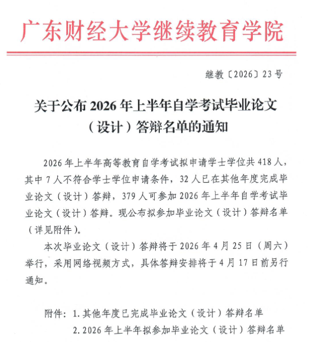 【广财】2026年上半年自学考试毕业论文(设计)答辩以及答辩注意事项