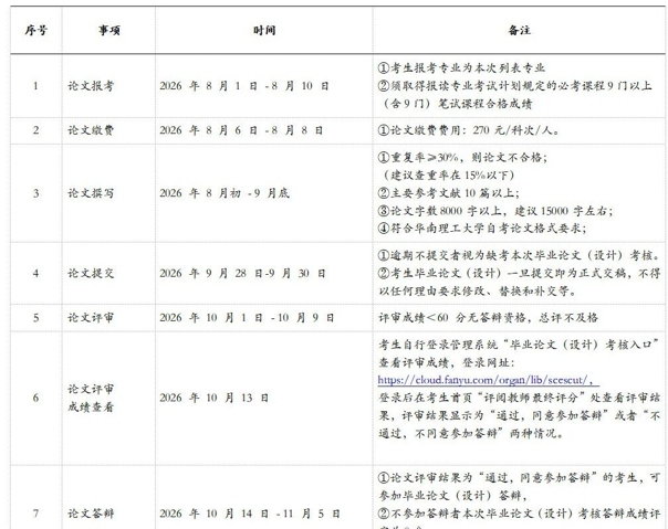 2026年下半年华南理工大学自考论文(设计)时间线及要求参考: